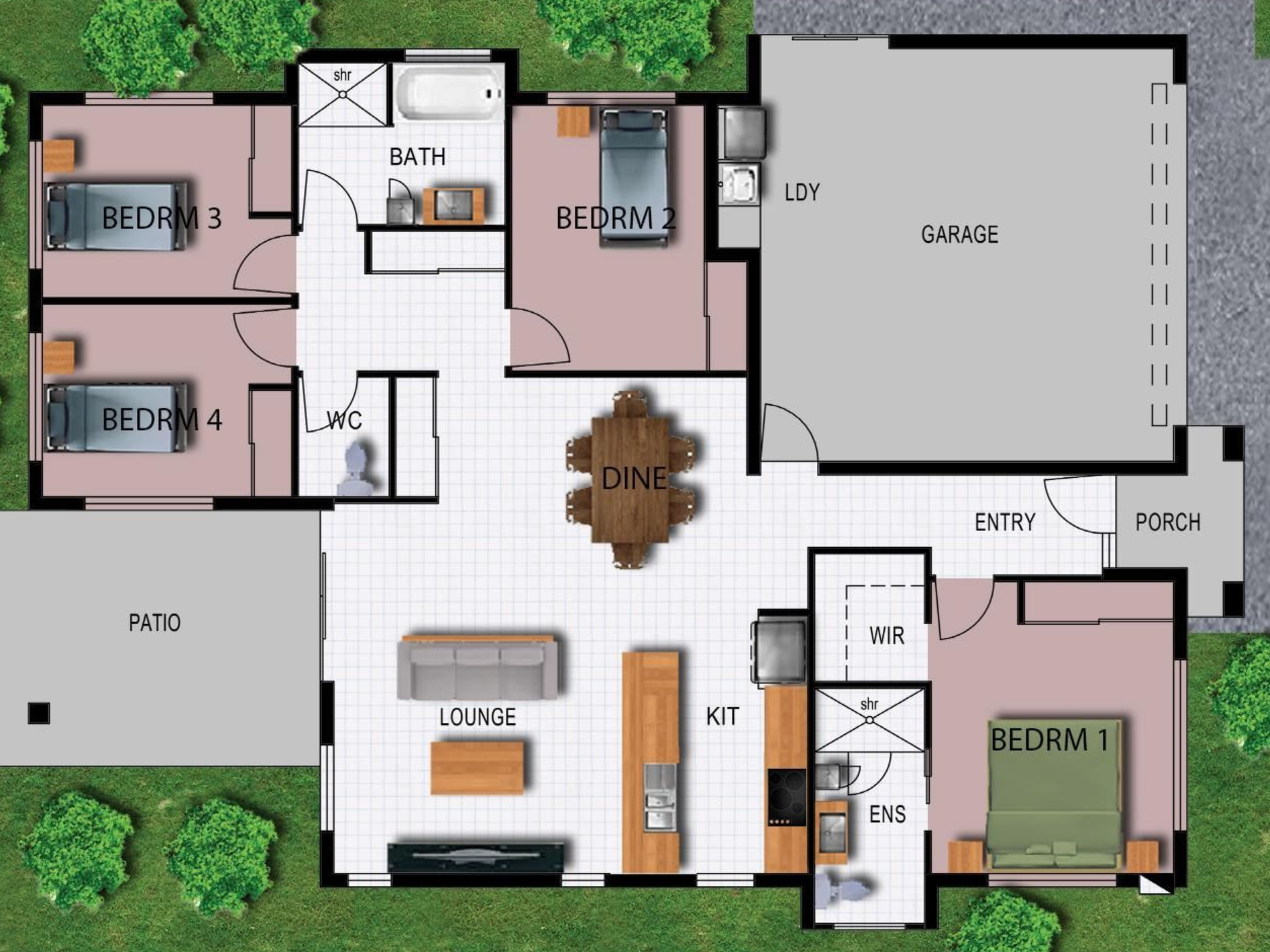 • Three additional bedrooms with built-in robes positioned at the rear of the home.
