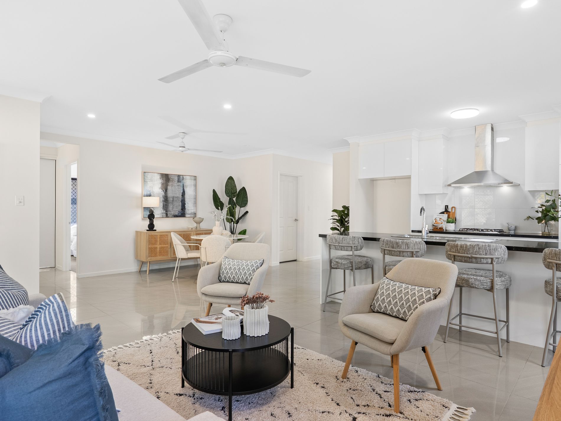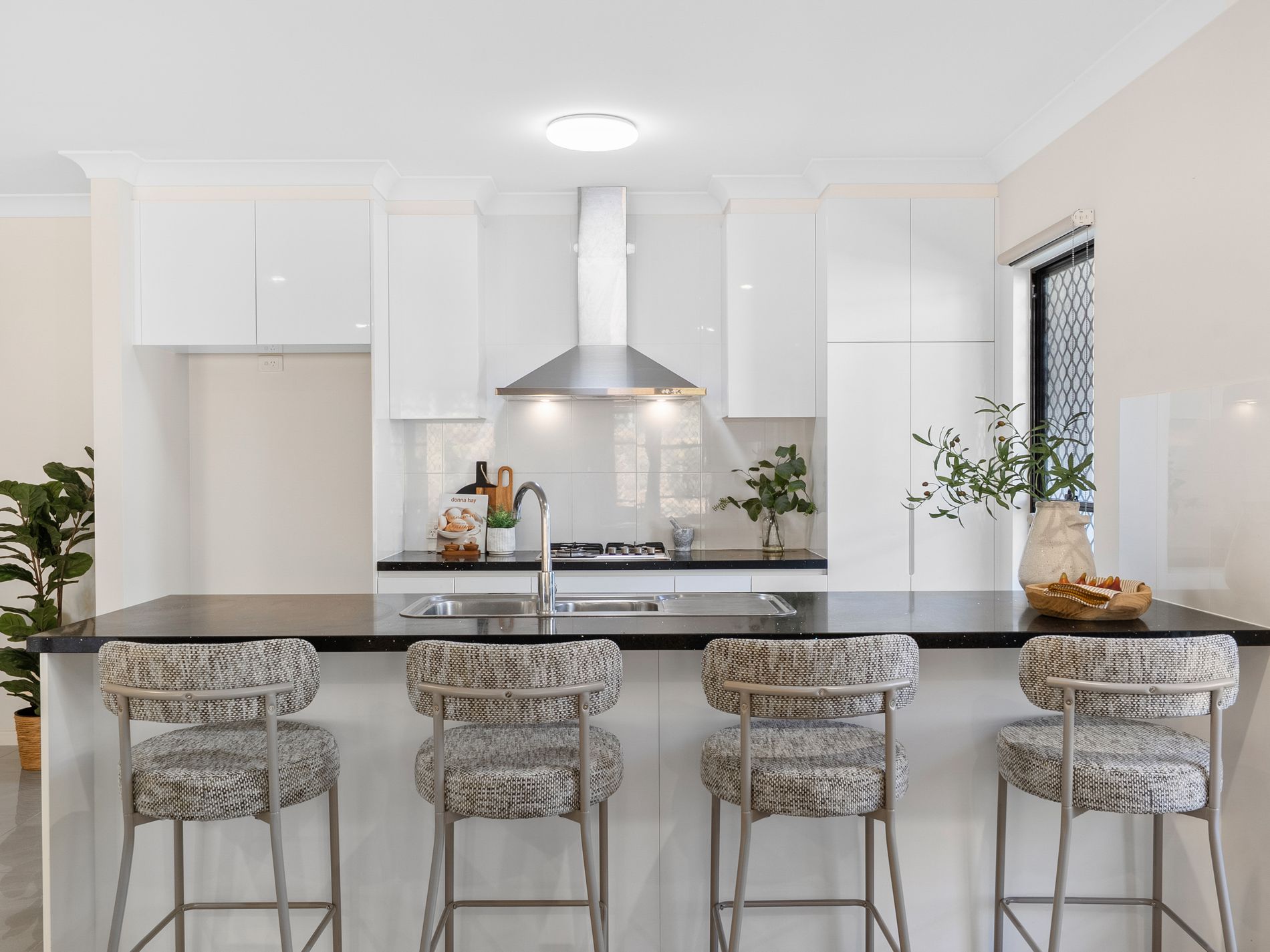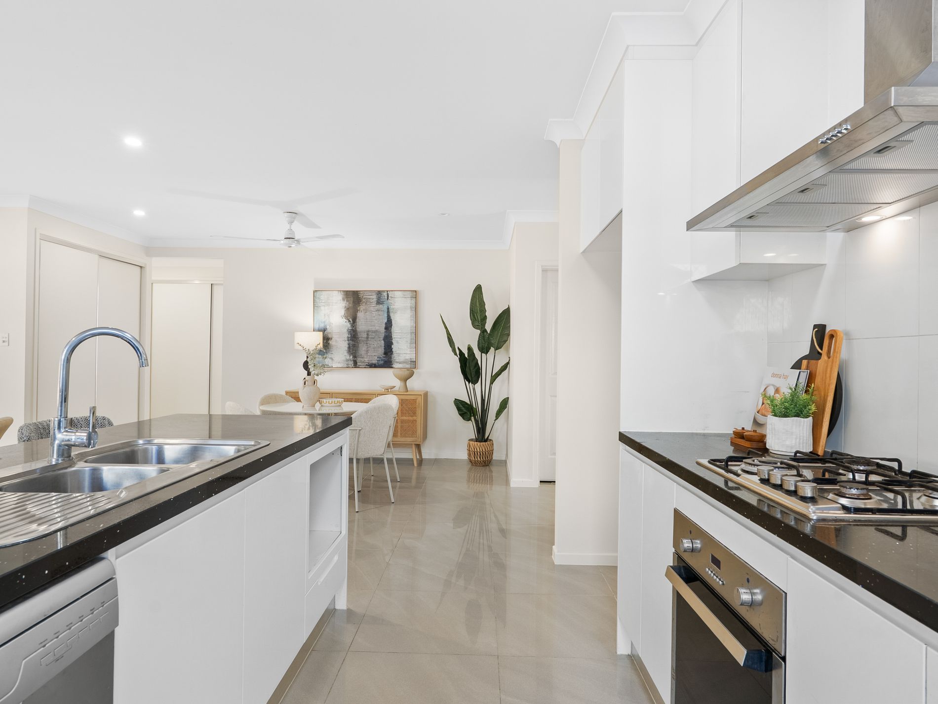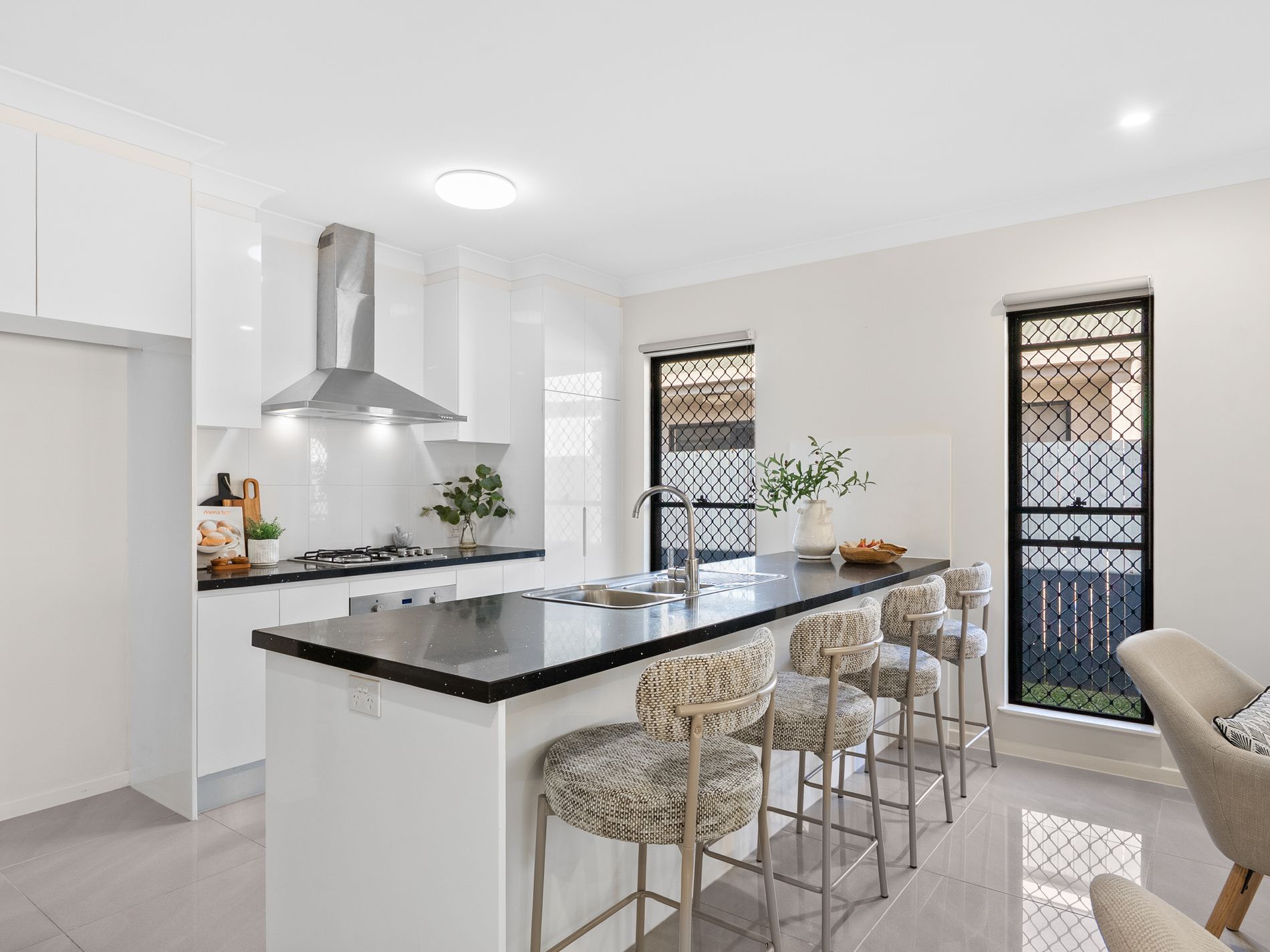 • Modern kitchen with granite benchtops, gas cooktop, rangehood, and plenty of cupboard space.