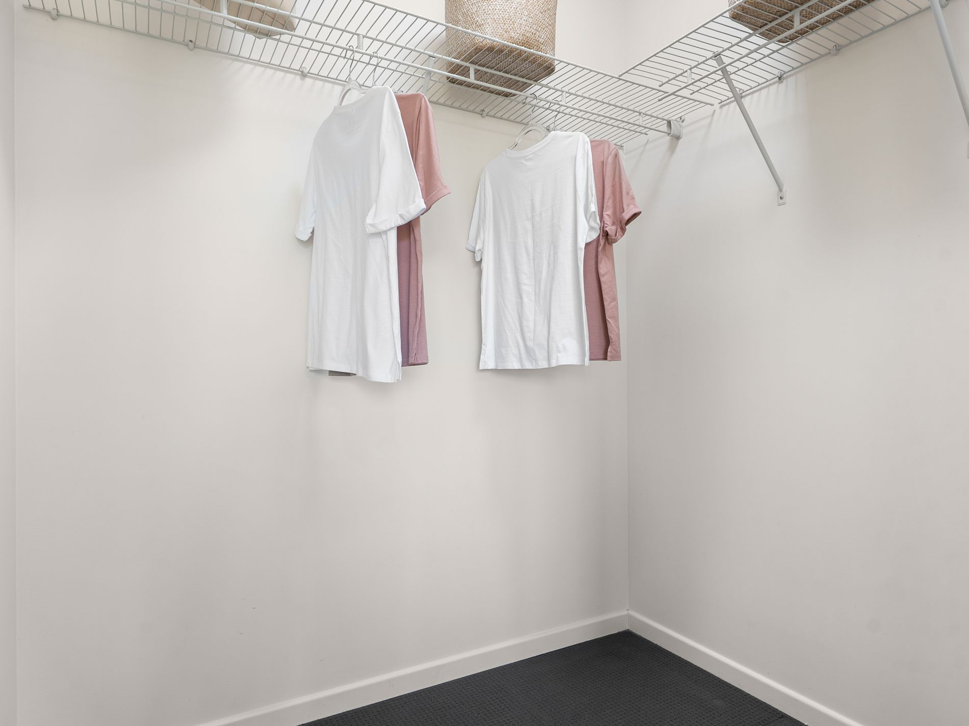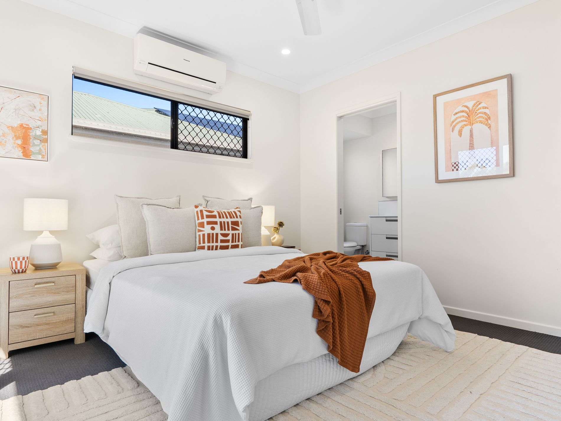 Spacious master bedroom with walk-in robe, additional built-in robe, and private ensuite