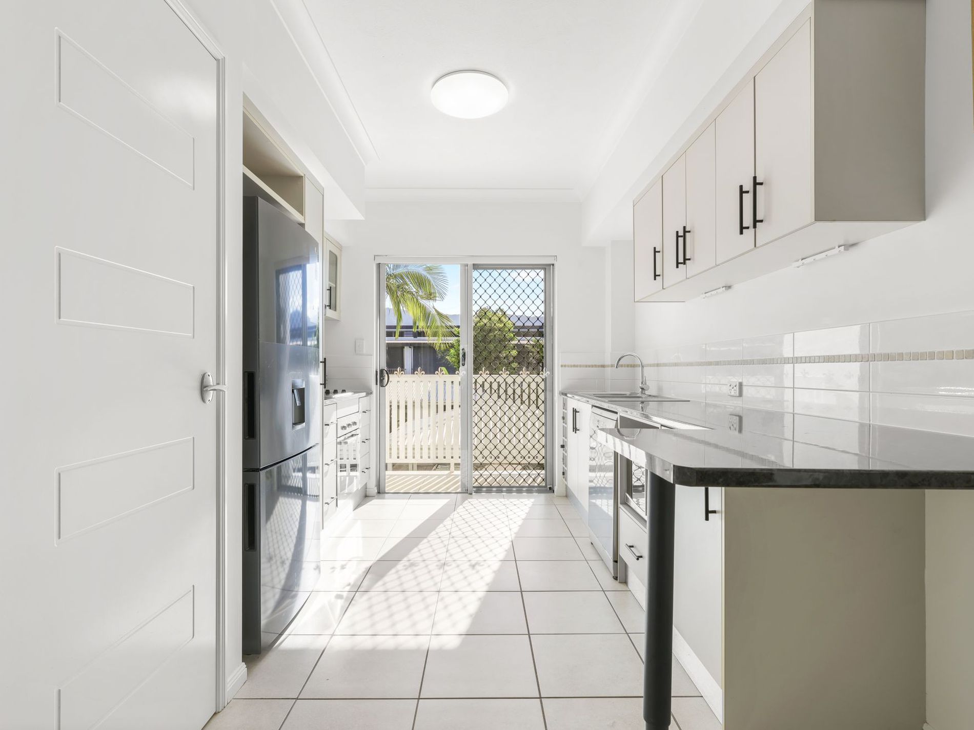 Versatile galley style kitchen boasts abundant bench and storage space with direct access to front balcony.