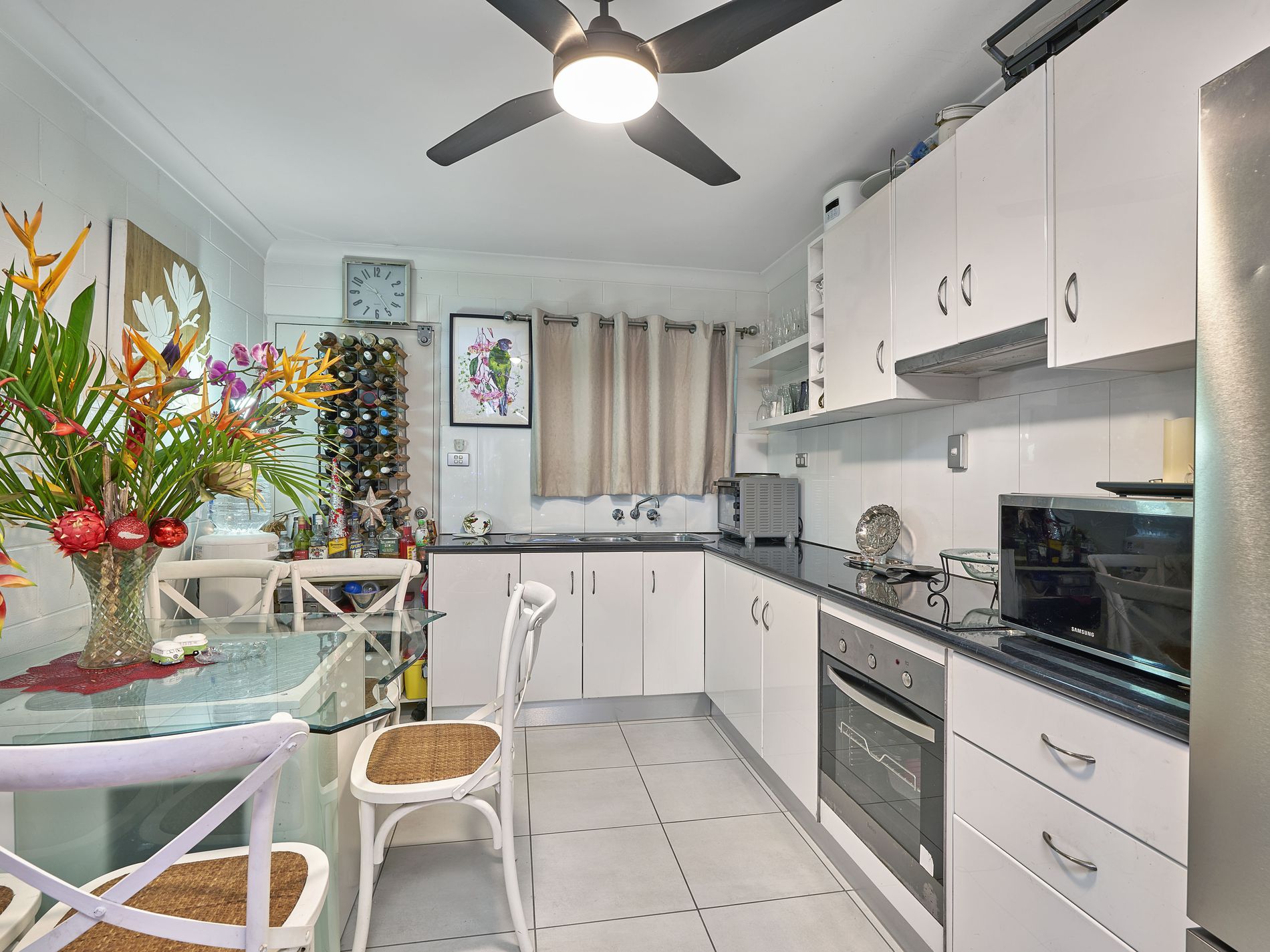 • Refreshed L-shape kitchen features oven, electric stove, rangehood and a breakfast bar