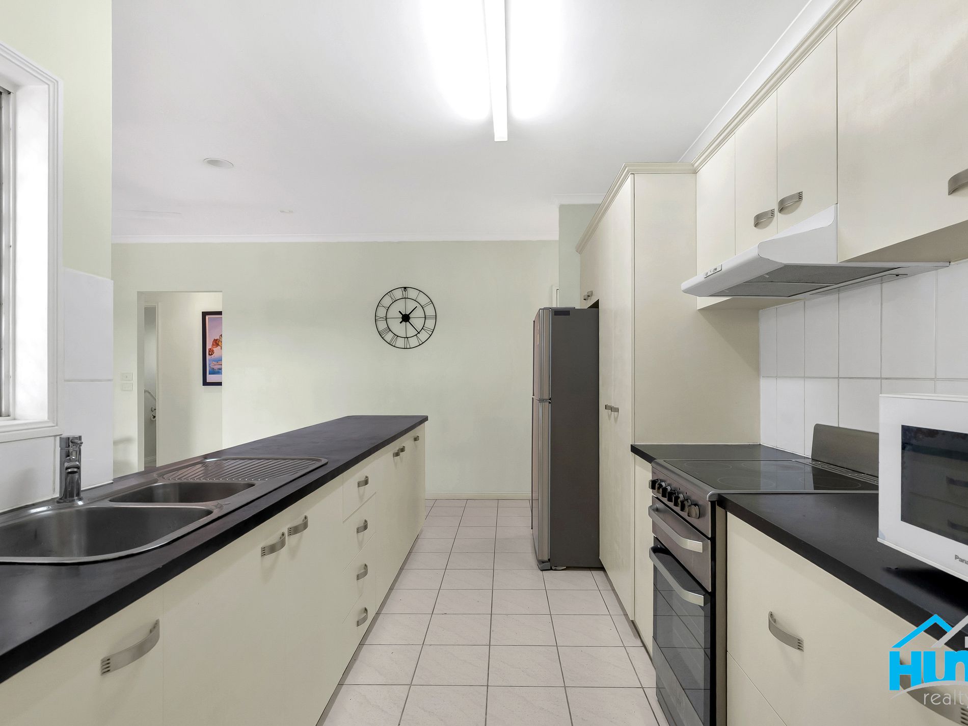 • Well-appointed galley-style kitchen with ample bench space, long servery and pantry.