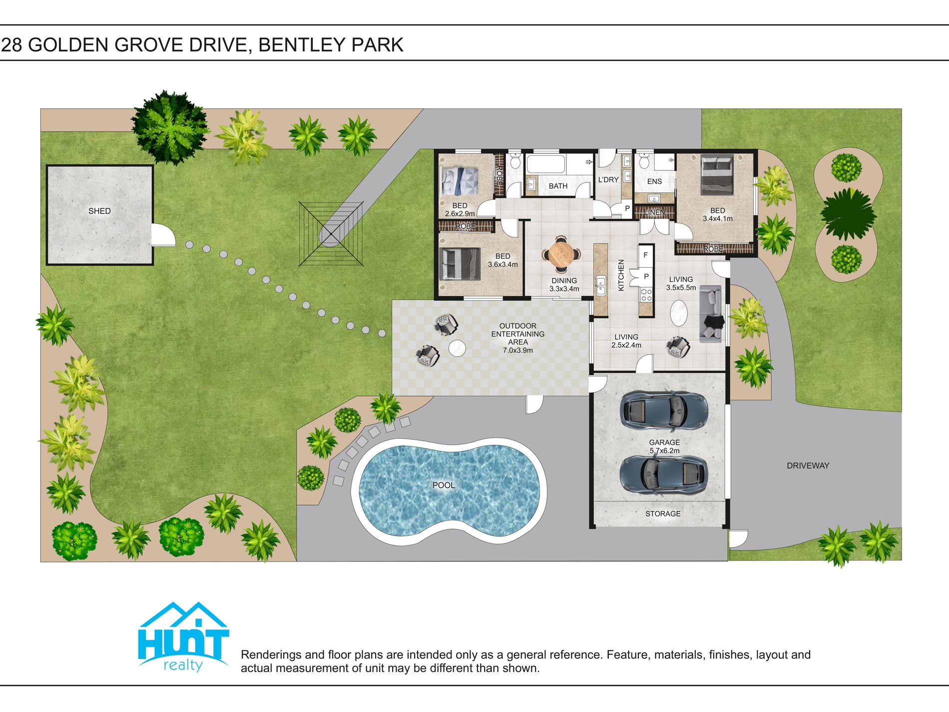• Seamless flow from kitchen and living areas to the covered outdoor entertaining area.