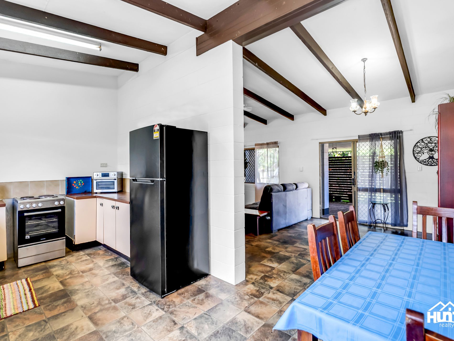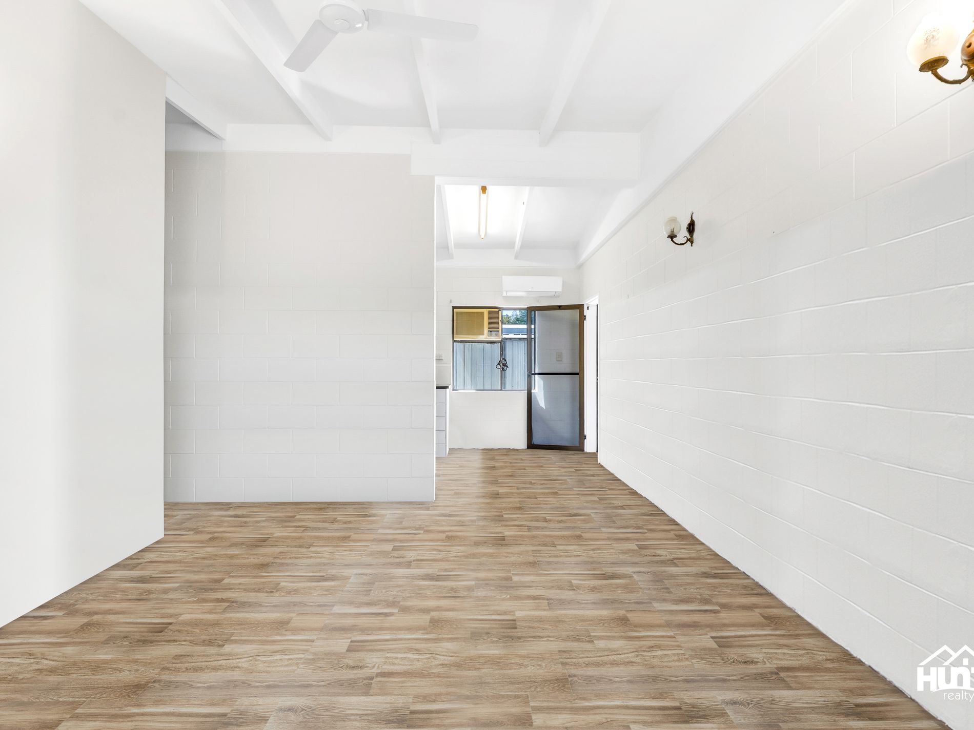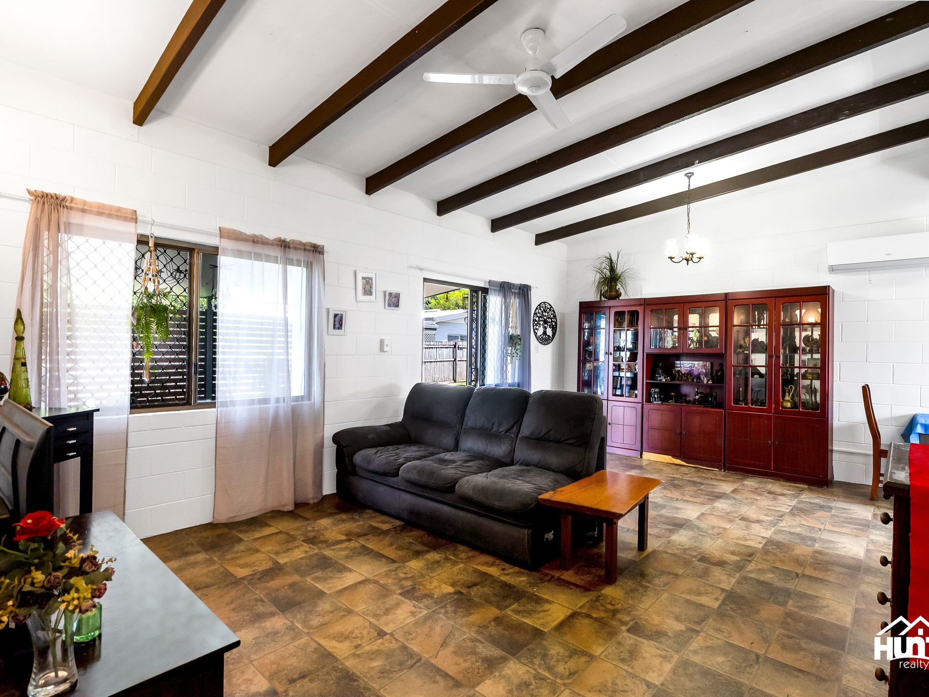 • Open-plan living with raked ceilings and split system air conditioning